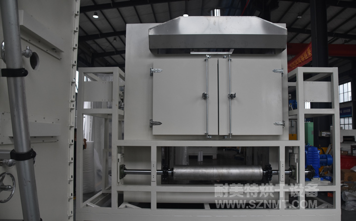 4、烘干部分总长 50000m,分1段,进出料端2500mm,中间9段每长5000mm,炉体前后装有急停开关。